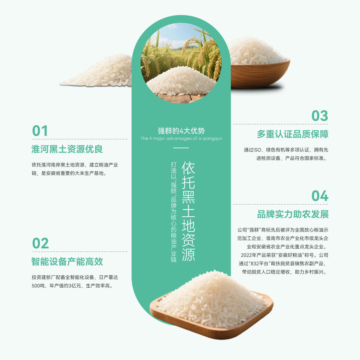 - 壽縣強群糧油貿易有限公司成立于2011年,座落在淮南市壽縣澗溝鎮(zhèn),是一家集種植、加工、收儲、銷售于一體、以生產中、高檔質優(yōu)、特色類大米為主的綜合性企業(yè)。公司依托準河南岸的黑土地資源,打造以“強群”品牌為核心的糧油產業(yè)鏈,是安徽省重要的大米生產基地。 為響應市場增長需求,公司2021年啟動二期擴產工程,其中新生產廠區(qū)建設投入資金近億元,建設現(xiàn)代化新生產線,總占地面積約4000...